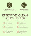 100% From Plants No Sulfates and No Betaines No Silicones No Synthetic or Artificial Fragrances Certified Biodegradable 100% Recycled Plastic Bottles Carbon Neutral